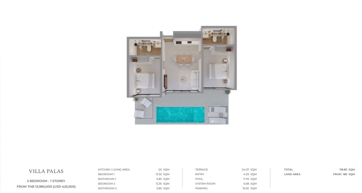 - Layouts: Single-storey and two-storey villas