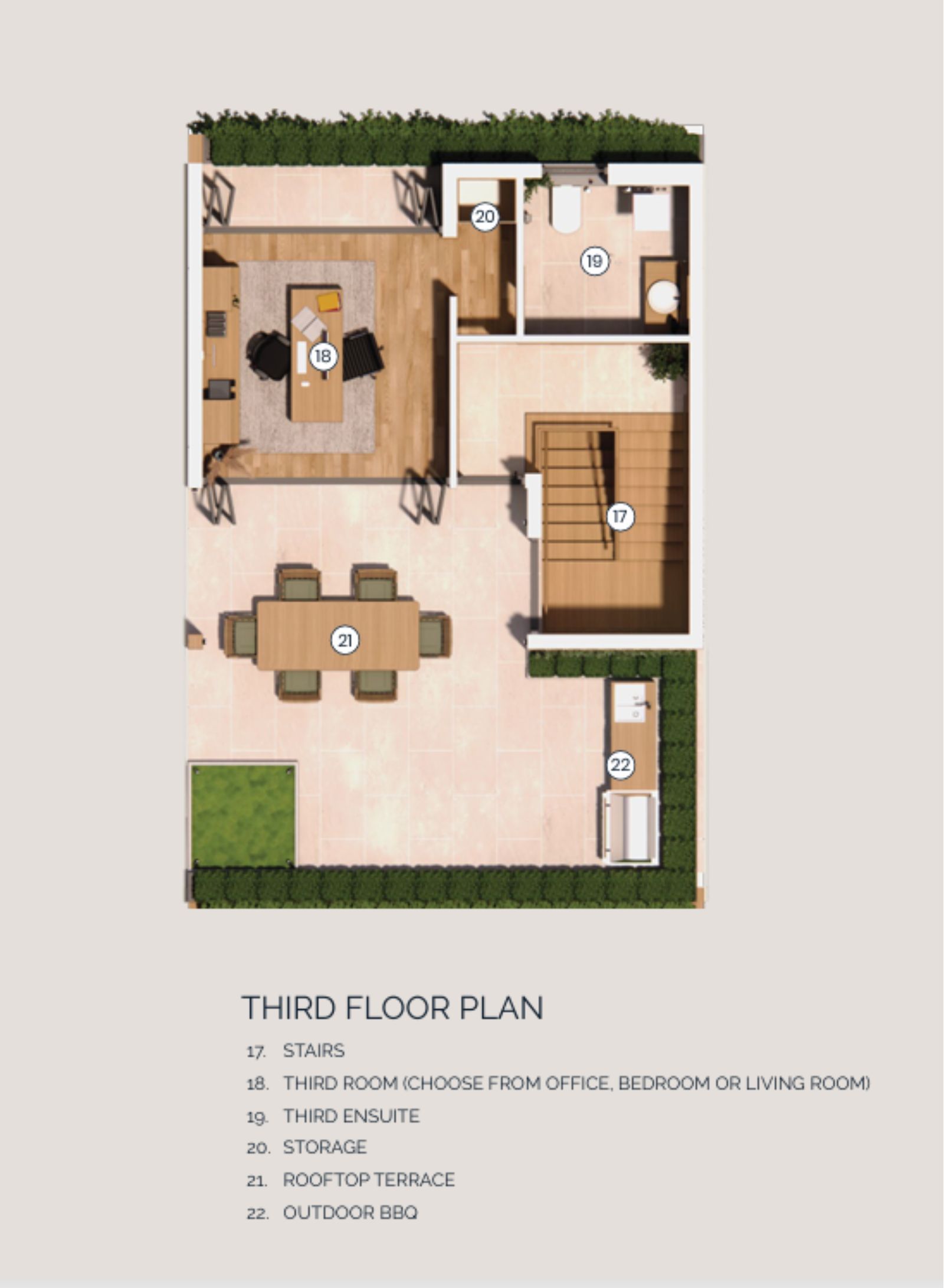With 219 sq.m of intelligently arranged indoor–outdoor living space, the Terraces are crafted for modern lifestyles—private enough for genuine retreat, yet connected to the community’s wellness infrastructure.