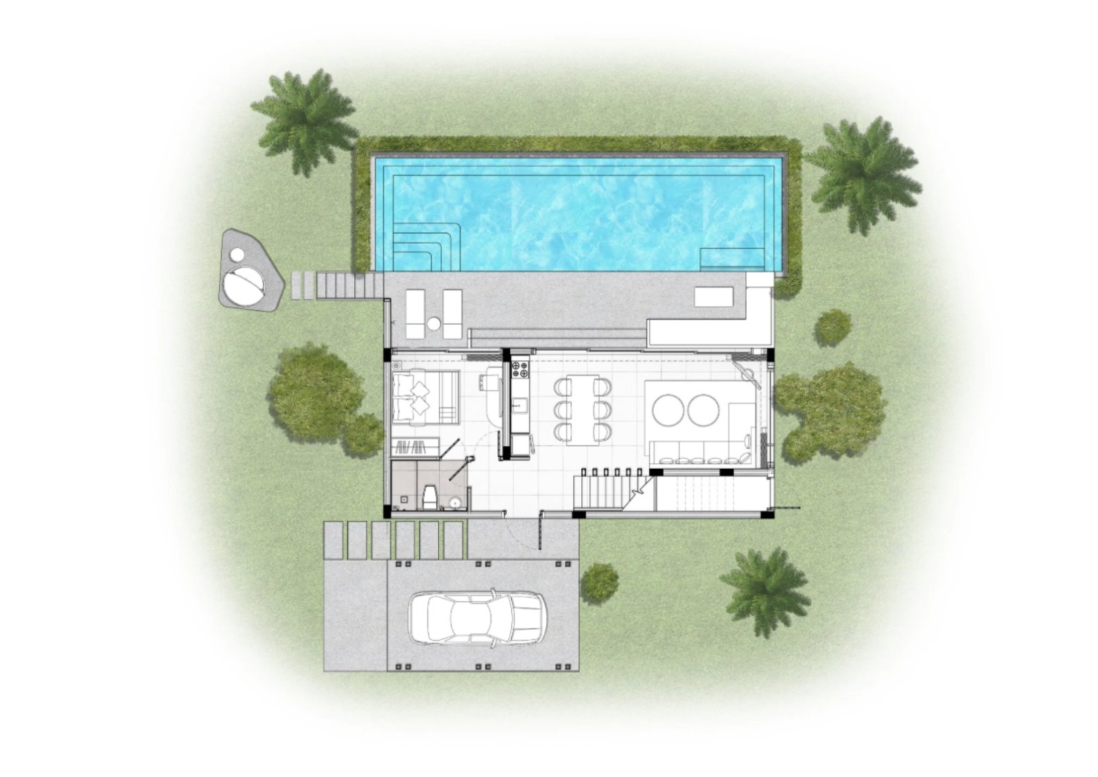 Designed for seamless indoor-outdoor living, the home features a spacious layout with a private infinity-edge saltwater pool and open-plan living areas that connect naturally to the surrounding landscape.