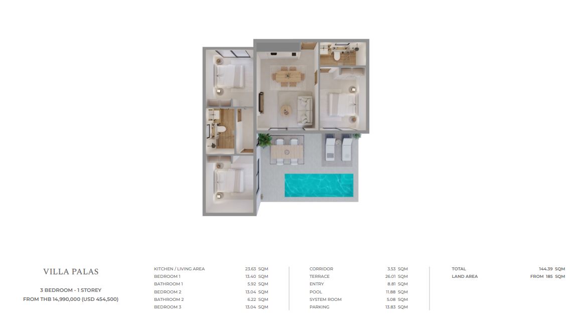 • Layouts: Single-storey and two-storey villas