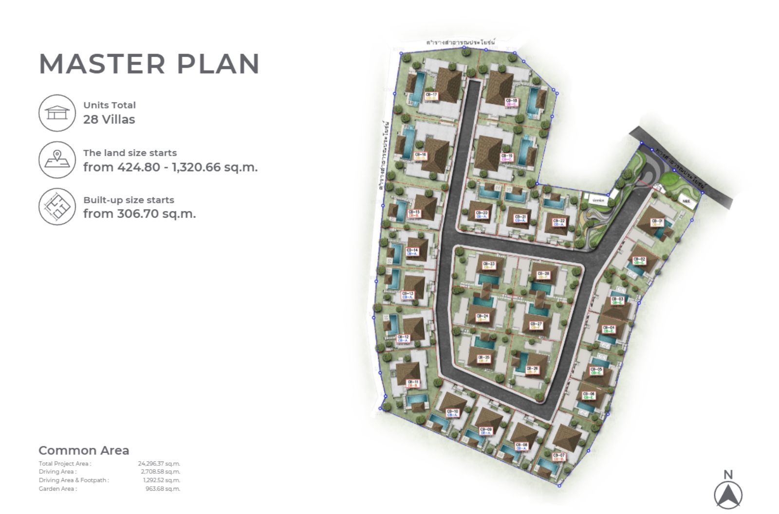 Each villa offers a single-storey, four-bedroom floor plan, with land and built-up sizes varying across three villa types. The design prioritizes natural light and functional layouts, making these homes well-suited for families or those who enjoy entertaining.